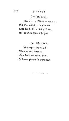 Keywords: DE Hebel Werke 1834 2 112.png 2 Allemannische und hochdeutsche Gedichte 1834 111 113