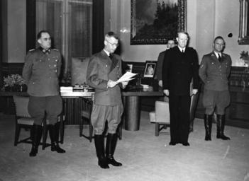 | Keywords: statsakten vidkun quisling vidkunquisling krigen andre verdenskrig andreverdenskrig world war ii worldwarii second world war secondworldwar okkupasjonstiden josef terboven josefterboven blackandwhite monochrome indoor black and white T. v. Wilhelm Rediess, Josef Terboven, Vidkun Quisling. 1942/02/01. RA/PA-1209/Ue 94/ img048 T. v. Wilhelm Rediess, Josef Terboven, Vidkun Quisling. 1942/02/01. RA/PA-1209/Ue 94/ img048 | ||||