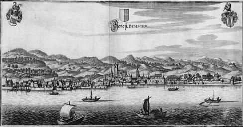 Keywords: De Merian Helvetiae, Rhaetiae et Valesiae 120.png 119 121 Historical images of Vevey Coats of arms of Stürler family