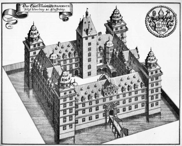 Keywords: De Merian Mainz Trier Köln 023.jpg Aschaffenburg Schloss Johannisburg 022 024 Schloss Johannisburg Engravings of castles in Bavaria