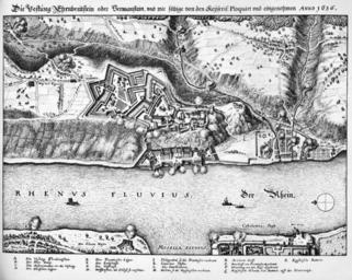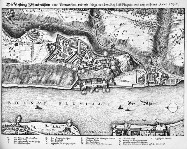 Keywords: De Merian Mainz Trier Köln 060.jpg Festung Ehrenbreitstein Historical images of the Festung Ehrenbreitstein 059 061 Maps of fortifications Kurfürstliche Residenz in Ehrenbreitstein