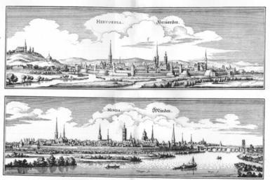Keywords: De merian Westphaliae 117.jpg 116 118 Upper picture 52 7 20 06 N 8 40 4 64 E region DE_heading SSE Lower picture Aa Werre Churches in Herford Churches in Minden Bridges over the Weser in Minden Engravings by Matthäus Merian Merian Westphaliae Engravings of towns in Germany River ships in art Defensive dykes City walls of Minden Fishing in Germany Werre in Herford Minden in the 17th century |