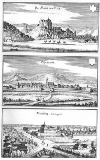 Keywords: De merian Westphaliae 126.jpg 125 127 Burg an der Wupper Hessisch Oldendorf Zetel