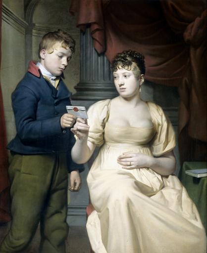 | Keywords: De minnebrief Rijksmuseum SK-A-1064.jpeg accession number SK-A-1064 nl De minnebrief Een jonge bediende overhandigt een verzegelde brief aan een zittend jonge vrouw Rechts een tafel waarop een boek ligt Op de achtergrond een zuil en gordijn ; Willem Bartel van der Kooi 1768-1836 olieverf op doek 1808 Height cm 131 Width cm 108 exhibition history 2005-2006 Meesters van de Romantiek Nederlandse kunstenaars 1800-1850 Rotterdam 2000-2005 Langdurig bruikleen Fries Museum Leeuwarden Institution Rijksmuseum Technique oil canvas object history Acquisition 1869 object type Potential derivatives exist check http //commons wikimedia org/w/index php search Rijksmuseum+SK-A-1064 this search PD-US PD-old-100 Data and photography rights All data and all images made available through the API are either in the public domain or are subject to a CC0 license https //www rijksmuseum nl/en/api/terms-and-conditions-of-use cc-zero place of creation E Bergvelt 'Lodewijk Napoleon de levende meesters en het Koninklijk Museum 1806-1810 ' Kunsthistorisch Jaarboek 56/57 2005/2006 p 275 afb 11 E Bergvelt 'Nationale levende en 19e-eeuwse meesters Rijksmusea en eigentijdse kunst 1800-1848 Nederlands Kunsthistorische Jaarboek 35 1984 p 88 afb 7 A M E L Hoogenboom 'Het Musée Imaginaire van de negentiende eeuw VIII Willem Bartel van der Kooi De Minnebrief' De Negentiende Eeuw 16 1992 p 86-87 http //www rijksmuseum nl/collectie/SK-A-1064 De minnebrief Q17323733 Uploaded with GWToolset De minnebrief Rijksmuseum SK-A-1064 http //www rijksmuseum nl/media/assets/SK-A-1064 Images uploaded by Fæ Images from the Rijksmuseum Paintings by Willem Bartel van der Kooi in the Rijksmuseum Amsterdam Willem Bartel van der Kooi |
