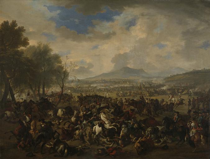 | Keywords: De slag bij Ramillies tussen de Fransen en de Geallieerden, 23 mei 1706 Rijksmuseum SK-A-4061.jpeg accession number SK-A-4061 Creator Jan van Huchtenburg credit line nl Veldslag bij Ramillies op 23 mei 1706 tussen de geallieerde troepen onder commado van Marlborough en Nassau-Ouwerkerk tegen de verenigde Franse Spaanse en Beierse troepen onder commando van Maarschalk de Villeroy Links enige hoge bomen rechts op het derde plan de heuvelrug waarop Folx-les-Caves en Jandreouille liggen en in het verschiet in de midden het plateau van Mont St André Op de voorgrond een ruitergevecht dat op de linkerflank van het geallieerde leger plaats vond tegen de rechterflank van Villeroy Rechts in de hoek een staf met vermoedelijk portret van Marlborough op een zwart paard De ruiter op de rug gezien is misschien generaal-majoor Murray Hij die er meer als een burger uitziet zou misschien kunnen zijn Sicco Goslinga de aan het geallieerde leger toegevoegde gedeputeerde van de Staten-Generaal Links van het midden vlak achter het grote ruitergevecht voert geallieerde cavalerie en charge uit tegen de infanteristen van de beide kronen die hen met gevelde pieken opwachten Meer naar achteren valt de hoofdmacht van de Geallieerden onder commando van Lord Orteney het centrum van de Frans-Spaans-Beierse linies onder Villeroy en keurvorst Maximiliaan Emanuel van Beiren aan die te Ramillies en verder naar het noorden bij Offus en Autreglise Anderkerk opgesteld stonden drager Height cm 116 drager Width cm 153 exhibition history Institution Rijksmuseum Technique oil canvas object history Acquisition 1961-03-01 object type Potential derivatives exist check http //commons wikimedia org/w/index php search Rijksmuseum+SK-A-4061 this search PD-US PD-old Data and photography rights All data and all images made available through the API are either in the public domain or are subject to a CC0 license https //www rijksmuseum nl/en/api/terms-and-conditions-of-use cc-zero place of creation http //www rijksmuseum nl/collectie/SK-A-4061 De slag bij Ramillies tussen de Fransen en de Geallieerden 23 mei 1706 Uploaded with GWToolset De slag bij Ramillies tussen de Fransen en de Geallieerden 23 mei 1706 Rijksmuseum SK-A-4061 http //www rijksmuseum nl/media/assets/SK-A-4061 Images uploaded by Fæ Images from the Rijksmuseum Paintings by Jan van Huchtenburg in the Rijksmuseum Amsterdam Jan van Huchtenburg |