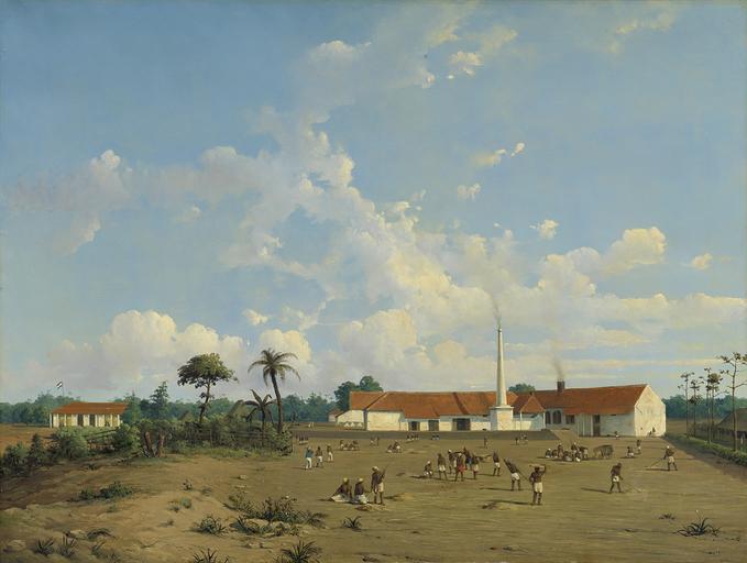 Keywords: De suikerfabriek 'Kemanglen' bij Tegal (of Tagal) op Java Rijksmuseum SK-A-4777.jpeg accession number SK-A-4777 Creator Ab Salm credit line nl De suikerfabriek 'Kemanglen' bij Tegal of Tagal op Java in 1841 opgericht door Th Lucassen Gezicht op enkele witte gebouwen suikerfabriek met een rokende fabrieksschoorsteen Links en huis met de Nederlandse vlag ervoor administrateurshuis Voor de fabriek groepen inlanders aan het werk met riet Geheel rechts laantje met kapok bomen Hoge hemel met wolken drager Height cm 80 drager Width cm 106 exhibition history Institution Rijksmuseum Technique oil canvas object history Acquisition 1980 object type Potential derivatives exist check http //commons wikimedia org/w/index php search Rijksmuseum+SK-A-4777 this search PD-US PD-old Data and photography rights All data and all images made available through the API are either in the public domain or are subject to a CC0 license https //www rijksmuseum nl/en/api/terms-and-conditions-of-use cc-zero place of creation 'Keuze uit de aanwinsten van de afdeling Nederlandse Geschiedenis 1977-1980' Bulletin van het Rijksmuseum 29 1981 nr 4 p 224 + 239 afb 29 J de Loos-Haaxman 'Een portret van Kemanglen' Verslagen en aanwinsten 1968-1969 Stichting cultuurgeschiedenis van de Nederlanders overzee 1970 p 48-49 met afb Documentatiemap Schilderijen http //www rijksmuseum nl/collectie/SK-A-4777 De suikerfabriek 'Kemanglen' bij Tegal of Tagal op Java Uploaded with GWToolset De suikerfabriek 'Kemanglen' bij Tegal of Tagal op Java Rijksmuseum SK-A-4777 http //www rijksmuseum nl/media/assets/SK-A-4777 Images uploaded by Fæ Images from the Rijksmuseum Dutch 19th-century paintings in the Rijksmuseum Amsterdam Ab Salm |