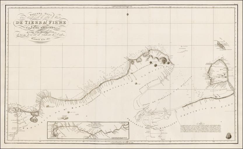 | Keywords: De Tierra Firme 3 Guajira-Paraguana 1816.jpg InteractiveViewer en map of Caribbean coast of Colombia and Venezuela from Guajira Peninsula to Paraguaná peninsula https //www raremaps com/gallery/detail/42319sh Direccion Hidrografica de Madrid 1816 Old maps of Venezuela 1816 maps PD-old-100 |