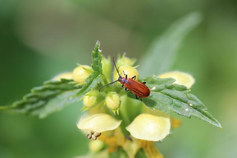 Keywords: dead nettle ground beetles insect close leaf red beetle summer