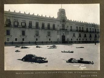 Keywords: Dead outside National Palace during one of the outbreaks, Mexico City.jpg Creator Ramos Manuel Date ca 1913 Part Of Album Mexican Revolution Page Number p 02 Place Mexico City Mexico File ag1996_1039_02_opt tif Rights Please cite Southern Methodist University Central University Libraries DeGolyer Library when using this file A high-quality version of this file may be obtained for a fee by contacting degolyer smu edu For more information see <a href http //digitalcollections smu edu/u /mex 102 rel nofollow >digitalcollections smu edu/u /mex 102</a> View Mexico Photographs Manuscripts and Imprints at <a href http //digitalcollections smu edu/all/cul/mex/ rel nofollow >digitalcollections smu edu/all/cul/mex/</a> Flickr http //flickr com/photos/41131493 N06/3790109812 Dead outside National Palace during one of the outbreaks Mexico City 1913-00-01 00 00 00 Manuel Ramos 1874 “1945 published by SMU Central University Libraries User Flickr upload bot/upload-pd 09 37 20 July 2013 UTC Mexsim PD-Mexico PD-Old Mexican Revolution Photographs from SMU Central University Libraries