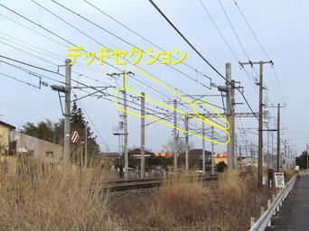 Keywords: Dead-section(fujishiro-toride)2.JPG The AC/DC section on Joban Line between Toride and Fujishiro Stations 常磐線取手駅 - 藤代駅間のデッドセクション(手前が直流 1 500 V 区間 奥が交流 20 kV 50 Hz 区間) Own toshinori baba 2010-02-21 Overhead lines in Japan Jōban Line Toride Ibaraki Overhead line section insulators |