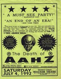 Keywords: Death of Aahz.jpg en Promotional flyer used by Beacham Theatre for The Death of Aahz event on Saturday July 4 1992 1992-06-20 Scanned image of a Beacham Theatre promotional flyer from July 4 1992 from personal collection of Andy Hughes Stacey StaceBass Howen Shayni Howen created flyer; 1939 Wizard of Oz film image and character is a copyright of Warner Bros per 2011 Eighth Circuit Court of Appeals ruling other versions Custom license marker 2016 08 31 Custom license marker 2016 08 31 PD-scan Beacham Theatre |