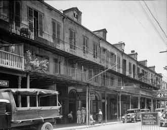 Keywords: Decatur Street French Quarter 1936 Ursulines Row Houses Street Scene.jpg New Orleans Street view Decatur Street French Quarter June 1936 FACADES ON DECATUR STREET Nos 1107-33 Marked 'A' on Plot Plan - Ursuline's Row Houses 1107-1133 Decatur Street Commercial Buildings New Orleans Note Row of commercial / residential buildings constructed on land on what had been the Decatur Street side of the Ursuline Convent grounds Historic American Buildings Survey photo by Richard Koch via http //hdl loc gov/loc pnp/hhh la0054/photos 072834p ; TIF cropped contrast slightly adjusted and image converted to jpg before uploading to Wikimedia Commons 1936-06 Richard Koch PD-USGov Unmodified TIF File Decatur Street French Quarter 1936 Ursulines Row Houses Street Scene tif 1936 in New Orleans Built in New Orleans in 1830 Decatur Street French Quarter Black and white photographs of the French Quarter Row houses in New Orleans Shops in the French Quarter June 1936 in the United States Black and white photographs of houses |