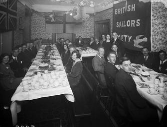 Keywords: sailors' rest sailorsrest british sailors' society britishsailorssociety christmas party ham bread christmas cake christmascake fruit cake fruitcake tinsel crackers ireland munster december 1931 1930s thirties sailors union jack unionjack tea white ensign whiteensign st. george's ensign stgeorgesensign poole collection poolecollection glass negative glassnegative a.h. poole ahpoole arthur henri poole arthurhenripoole david beatty davidbeatty earl beatty earlbeatty henrietta street henriettastreet waterford national library of ireland nationallibraryofireland christmas across the commons christmasacrossthecommons blackandwhite monochrome black and white Lovely shot of Christmas festivities at Waterford's Sailors' Rest. Particularly like the British Sailors' Society banner adorned by a dove with a twig in its mouth (as in the Noah's Ark story). And wondering if the Christmas crackers on the tables were Tom Smith's brand... We didn't have a location for this Sailors' Rest that we first featured back on 17 July, although we knew this photo was ordered by a Mr Craig, until ofarrl commented: "This was more than likely number 9 Henrietta Street, Waterford which was the address of the David Beatty Sailors Rest." Date: 29 December 1931 NLI Ref.: P_WP_3883 Lovely shot of Christmas festivities at Waterford's Sailors' Rest. Particularly like the British Sailors' Society banner adorned by a dove with a twig in its mouth (as in the Noah's Ark story). And wondering if the Christmas crackers on the tables were Tom Smith's brand... We didn't have a location for this Sailors' Rest that we first featured back on 17 July, although we knew this photo was ordered by a Mr Craig, until ofarrl commented: "This was more than likely number 9 Henrietta Street, Waterford which was the address of the David Beatty Sailors Rest." Date: 29 December 1931 NLI Ref.: P_WP_3883 |