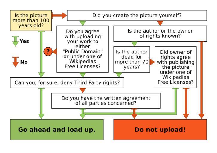 Keywords: Decision Tree on Uploading Imagesv2.svg decision tree Determining whether a work is PD involves far more than merely checking whether it has been created more than 100 years ago Decision Tree on Uploading Images Entscheidungsbaum für den Upload von Bildern nach Commons Árbol de decisión para subir imágenes Arbre de décision pour l'envoi d'images Albero di decisione per l'invio di immagini アップロード可否決定の早見チャート Drzewo decyzyjne przy przesyłaniu plików na Commons wersja angielska 关于上传图像的流程图 上傳 片決策樹 own 2006-05-27 Stefan Lew based on work of WolfgangW This image is public domain You may use this image for any purpose including commercial see gallery Handling Images in commons/Copyright tutorial Wikipedia decision diagrams |