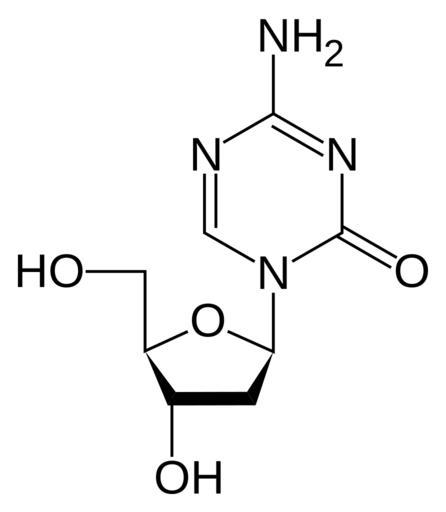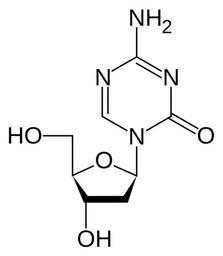 Keywords: Decitabine.svg Skeletal formula of decitabine 5-aza-2'-deoxycytidine Created using http //www acdlabs com/download/chemsk html ACD/ChemSketch 10 0 and Inkscape Own 2007-10-03 Fvasconcellos 15 47 3 October 2007 UTC Chemotherapeutic agents Nucleosides Triazines |