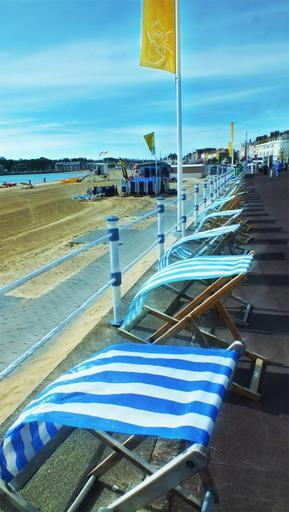 Keywords: deckchairs seaside beach sky sand landscape cloud skies