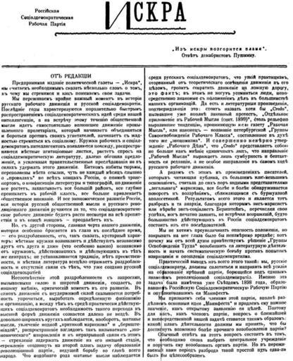 | Keywords: Declaration of editorial staff Iskra.jpg en First page of Declaration of editorial staff Iskra ru Пе вая ст аница отдельного листка Заявление едакции Иск ы 1900 г 1900 http //lib rus ec/i/66/211366/9 jpg Vladimir Lenin and etc PD-old Uploaded with UploadWizard Iskra |