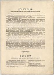 | Keywords: Declaration and Treaty on the Creation of the USSR-1922-page1.jpg en Declaration and Treaty on the Creation of the USSR 1922 page 1 ru Декла ация и Догово об об азовании СССР 1922 с 1 1922-12-29 http //rusarchives ru/projects/statehood/09-02-deklaraciya-obrazovanie-sssr-1922 shtml government agencies other versions Custom license marker 2016 06 28 PD-1923 PD-RU-exempt Declaration and the Treaty on the Creation of the Soviet Union | ||||
