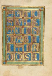 Keywords: Decorated Incipit Page - Google Art Project (6850315).jpg Gold capital letters laid out in an exquisitely balanced geometric grid continue the text of Psalm 1 which began with the large initial B on the page facing this one The letters set against colored grounds of mauve and blue read Beatus vir qui non abiit in consilio impiorum Blessed is the man who has not walked in the counsel of the ungodly None 430703 Unknown /collection/the-j-paul-getty-museum/artwork/decorated-incipit-page-unknown/6850315/ Unknown illuminator /collection/the-j-paul-getty-museum/ The J Paul Getty Museum 343005 http //www getty edu/museum 3/12/2012 5 17 04 PM /collection/the-j-paul-getty-museum/artwork/decorated-incipit-page-unknown/6850315/ 1240 about 1240 - 1250 Tempera colors gold leaf and silver leaf on parchment 227 6850315 True 1250 3/25/2012 2 00 45 PM lido getty edu-gm-obj110066 http //www getty edu/art/gettyguide/artObjectDetails artobj 110066 http //www getty edu/legal/copyright html Folio 1240 1260 Würzburg Germany Creation w157 x h227 cm about 1240 - 1250 False 0 689453125 Part decorated-incipit-page-unknown Decorated Incipit Page d 157 Tempera colors gold leaf and silver leaf on parchment http //www getty edu/legal/copyright html special url_id 5wHzgTpU2jU6IQ PD-old-100 MS LUDWIG VIII 2 Getty museum - Würzburger Psalter Google Art Project works by unknown artist Gold leaf Opening pages Psalm 1 |
