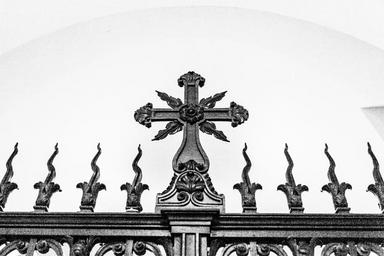 Keywords: decorative gate cross gate decorative entrance church architecture old ancient culture history city religion tourism cathedral christianity black and white medieval worship temple flames hell's gate historic