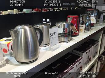| Keywords: As indicated by the red arrows, the same brand of kettle sold by David Jones was seen as defaced on the shelves of Myers.