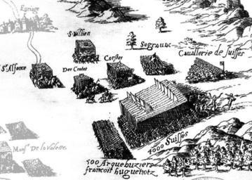 Keywords: Defaitte des Suisses en Dauphiné det 2.jpg Artwork LangSwitch map representing positions during a battle carte représentant un ordre de bataille Date 1899 11 30 Technique engraving black Musée de l'Ancien Évêché de Grenoble place of discovery object history exhibition history credit line full form Le portrait de la défaite des Suisses en Dauphiné par Monsieur de la Valette title recto top fr full form à Paris à Saint-Germain des prés rue de Seine à l'enseigne de la Croix blanche publisher's mark recto bottom left fr LangSwitch the map is taken from an old book la carte est extraite d ™un ouvrage ancien accession number place of creation own PD-old Defaitte des Suisses en Dauphiné jpg cropped Patafisik cite book Robert Aillaud Robert Aillaud chapter La bataille de Jarrie 19 août 1587 30 cm 978-2-9533-5080-7 Vasti-Dumas 2008 fr Battle of Jarrie Pikemen |