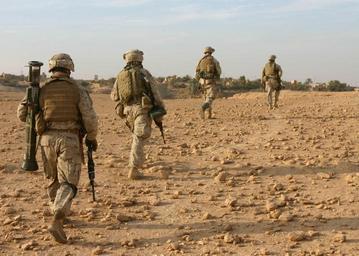 | Keywords: Defeating IEDs DVIDS14446.jpg en Minutes after discovering an improvised explosive device and destroying an insurgent bomb placement team a group of heavily-armed Marines from Battalion Landing Team 1st Bn 2nd Marines head back to their vehicles after searching the area around the engagement site near Forward Operating Base Hit Iraq Jan 2 2006 The patrol was in support of the 22nd Marine Expeditionary Unit Special Operations Capable as it continues its ongoing counterinsurgency efforts in Iraq's Al Anbar province with the 2nd Marine Division 2006-01-02 https //www dvidshub net/image/14446 14446 2006-01-12 12 44 IQ PD-USGov 22nd Marine Expeditionary Unit Images from DoD uploaded by Fæ |