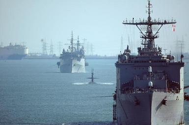 Keywords: Defense.gov News Photo 060409-N-1429S-003.jpg en The USS Carter Hall LSD 50 USS Norfolk SSN 714 and amphibious transport dock ship USS Austin LPD 4 steam in file as they transit through the Suez Canal on April 7 2006 The ships of Expeditionary Strike Group Eight are on their way to the Mediterranean Sea after a deployment in the 5th Fleet area of operations 060409-N-1429S-003 Navy http //www defense gov/photos/newsphoto aspx newsphotoid 7862 2006-04-09 en Petty Officer 3rd Class Sean Stafford U S Navy PD-USGov-Military-Navy Defense gov news media for April 2006 Import by User Slick-o-bot/Defense gov News Photos USS Carter Hall LSD-50 USS Norfolk SSN-714 USS Austin LPD-4 Taken with Nikon D70 |