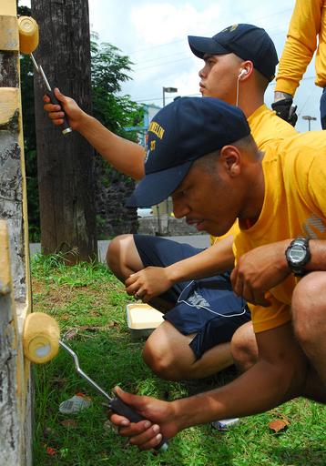 Keywords: Defense.gov News Photo 090624-N-9698C-033.jpg en U S Navy Petty Officer Tomas Barnes and Petty Officer 2nd Class Hanale Koeger assigned to the guided-missile frigate USS Crommelin FFG 37 paint the side of a baseball dugout during a community service project on the island of Pohnpei in the Federal States of Micronesia on June 24 2009 The Crommelin visited the island for a port visit while supporting U S Coast Guard fisheries enforcement in Oceania during a deployment in the western Pacific Ocean 090624-N-9698C-033 http //www defense gov/photos/newsphoto aspx newsphotoid 11416 2009-06-24 en Petty Officer 2nd Class John Wallace Ciccarelli Jr U S Navy PD-USGov-Military Check categories 2012 August 18 Import by User Slick-o-bot/Defense gov News Photos Defense gov photos requiring renaming 24 June June 2009 Micronesia Taken with Nikon D200 Images from United States Navy to check |