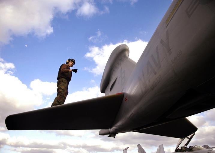 | Keywords: Defense.gov News Photo 060309-N-9742R-134.jpg en U S Navy Airman Lorne Horit inspects the horizontal stabilizers of an EA-6B Prowler aircraft on the flight deck of the aircraft carrier USS Enterprise CVN 65 as the ship operates in the Atlantic Ocean on March 9 2006 The all-weather Prowler provides protection for strike aircraft ground troops and ships by jamming enemy radar electronic data links communications and obtains tactical electronic intelligence within the combat area Horit and the Prowler are assigned to Tactical Electronic Warfare Squadron 137 Enterprise and its embarked Carrier Air Wing 1 are conducting a composite training unit exercise while under way in the Atlantic Ocean 060309-N-9742R-134 Navy http //www defense gov/photos/newsphoto aspx newsphotoid 7764 2006-03-09 en Petty Officer 2nd Class Milosz Reterski U S Navy PD-USGov-Military-Navy Defense gov news media for March 2006 Import by User Slick-o-bot/Defense gov News Photos Grumman EA-6 Prowler on flight decks Taken with Nikon D2X Aboard USS Enterprise CVN-65 USS Enterprise CVN-65 EA-6B Prowler US Marine Corps |