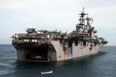 | Keywords: Defense.gov News Photo 060221-N-5067K-053.jpg en A Filipino fishing boat passes the stern of the amphibious assault ship USS Essex LHD 2 that is operating off the coast of the island of Leyte Philippines on Feb 21 2006 Sailors and Marines from the Essex and the dock landing ship USS Harpers Ferry LSD 49 are providing humanitarian assistance for the victims of the Feb 17 2006 landslide in the village of Guinsaugon on the island of Leyte 060221-N-5067K-053 Navy http //www defense gov/photos/newsphoto aspx newsphotoid 7700 2006-02-21 en Petty Officer 1st Class Michael D Kennedy U S Navy PD-USGov-Military-Navy Defense gov news media for February 2006 Import by User Slick-o-bot/Defense gov News Photos Taken with Nikon D70 USS Essex LHD-2 Images from US Navy location Cabalian Bay Republic of the Philippines |
