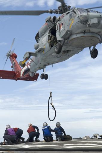 Keywords: Defense.gov News Photo 090617-N-9123L-059.jpg en U S Navy sailors aboard the guided-missile destroyer USS McCampbell DDG 85 prepare to receive a fuel line from an SH-60B Seahawk helicopter assigned to Helicopter Anti-submarine Squadron Light 51 during a helicopter in-flight refueling exercise in the Pacific Ocean on June 17 2009 The McCampbell is one of seven Arleigh Burke-class guided-missile destroyers assigned to Destroyer Squadron 15 and is permanently forward deployed to Yokosuka Japan 090617-N-9123L-059 http //www defense gov/photos/newsphoto aspx newsphotoid 11391 2009-06-17 en Petty Officer 2nd Class Byron C Linder U S Navy PD-USGov-Military Import by User Slick-o-bot/Defense gov News Photos SH-60 Seahawk Taken with Nikon D200 Aboard USS McCampbell DDG-85 USS McCampbell DDG-85 |
