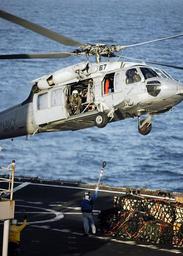 Keywords: Defense.gov News Photo 060114-N-4166B-055.jpg en An SH-60 Seahawk helicopter prepares to pick up a cargo net of supplies from flight deck of the USNS Bridge T-AOE 10 during an underway replenishment with the aircraft carrier USS Abraham Lincoln CVN 72 off the coast of Southern California on Jan 14 2006 The Bridge is a Military Sealift Command fast combat support ship 060114-N-4166B-055 Navy http //www defense gov/photos/newsphoto aspx newsphotoid 7548 2006-01-14 en Petty Officer 3rd Class Jordon R Beesley U S Navy PD-USGov-Military-Navy Defense gov news media for January 2006 Import by User Slick-o-bot/Defense gov News Photos SH-60 Seahawk Taken with Nikon D70 USS Abraham Lincoln CVN-72 |