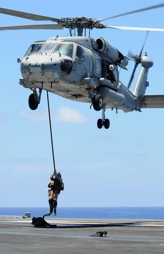 Keywords: Defense.gov News Photo 090612-N-3659B-580.jpg en A U S Navy explosive ordnance disposal technician assigned to Mobile Unit 11 Platoon 0-2 fast-ropes onto the flight deck of the aircraft carrier USS Ronald Reagan CVN 76 during a training exercise in the Pacific Ocean on June 12 2009 The exercise is a combined effort between the explosive ordnance disposal team and Helicopter Anti-submarine Squadron 4 The Reagan is underway on deployment to the western Pacific 090612-N-3659B-580 http //www defense gov/photos/newsphoto aspx newsphotoid 11377 2009-06-12 en Petty Officer 2nd Class Joseph M Buliavac U S Navy PD-USGov-Military Import by User Slick-o-bot/Defense gov News Photos Taken with Nikon D300 Training on USS Ronald Reagan CVN-76 Fast roping UH-60 class helicopters Helicopter Anti-Submarine Squadron 4 United States Navy |