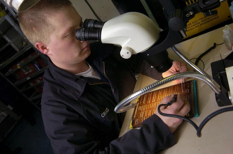Keywords: Defense.gov News Photo 050305-N-1485H-059.jpg en Petty Officer 2nd Class Robert Craig repairs a micro-miniature circuit card in the Avionics Work Center aboard the USS Kitty Hawk CV 63 as the ship operates in the Pacific Ocean on March 5 2005 Craig is a Navy aviation electronics technician assigned to the aircraft carrier's Aircraft Intermediate Maintenance Department 050305-N-1485H-059 Navy http //www defense gov/photos/newsphoto aspx newsphotoid 6225 2005-03-05 en Petty Officer 3rd Class Lamel J Hinton U S Navy PD-USGov-Military-Navy Defense gov news media for March 2005 Naval ships of the United States Import by User Slick-o-bot/Defense gov News Photos Defense gov photos requiring renaming Photos taken with Nikon D2H |