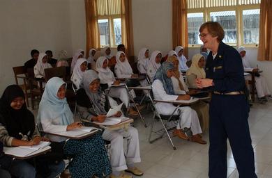 Keywords: Defense.gov News Photo 050223-N-8796S-085.jpg en Navy Nurse Cmdr Suzanne Clark takes questions during a lecture on diabetes nursing students at the university in Banda Aceh Indonesia on Feb 23 2005 Clark is attached to the hospital ship USNS Mercy T-AH 19 that is currently on station off the coast of Indonesia providing medical assistance and disaster relief in conjunction with non-governmental organizations to the people of Indonesia affected by the devastating tsunami that hit Southeast Asia on Dec 26 050223-N-8796S-085 Navy http //www defense gov/photos/newsphoto aspx newsphotoid 6183 2005-02-23 en Petty Officer 2nd Class Timothy Smith U S Navy PD-USGov-Military-Navy Defense gov news media for February 2005 Indonesia Import by User Slick-o-bot/Defense gov News Photos Defense gov photos requiring renaming Taken with Nikon D1H USNS Mercy T-AH-19 |