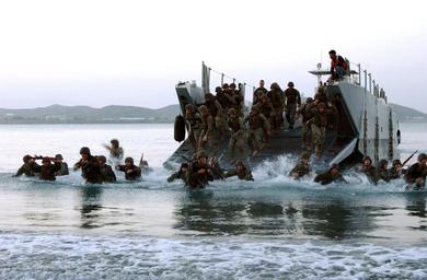 Keywords: Defense.gov News Photo 040623-N-2903M-001.jpg en U S Marines and sailors assigned to the 1st Fleet Antiterrorism Security Team 7th Platoon jump out of their landing craft and plunge into the surf during a pre-dawn amphibious assault exercise at Guantanamo Bay Cuba on June 23 2004 040623-N-2903M-001 Navy http //www defense gov/photos/newsphoto aspx newsphotoid 5189 2004-06-23 en Petty Officer 1st class Terry W Matlock U S Navy PD-USGov-Military-Navy Defense gov news media for June 2004 Import by User Slick-o-bot/Defense gov News Photos United States Marine Corps training Fleet Antiterrorism Security Team Landing craft |