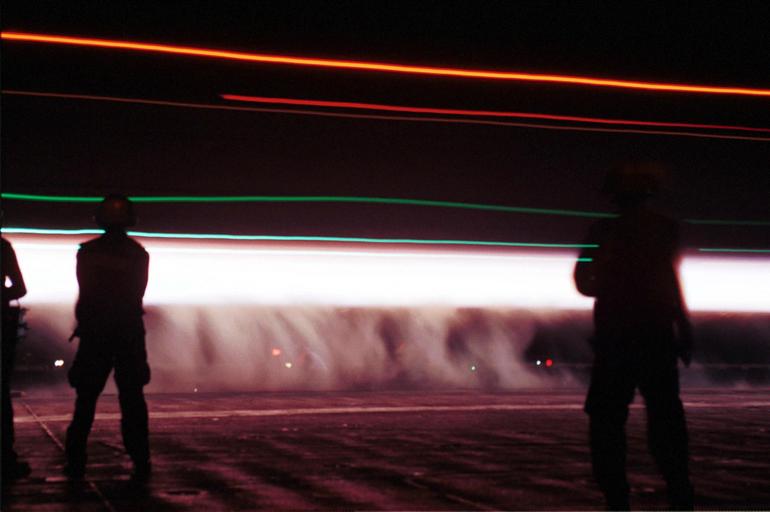 | Keywords: Defense.gov News Photo 011007-N-4533L-001.jpg en The night launch of a Navy F-14 Tomcat becomes a trail of steam and light silhouetting the flight deck crewmen on the USS Enterprise CVN 65 on Oct 7 2001 The Enterprise is launching aircraft for strike missions against al Qaeda terrorist training camps and military installations of the Taliban regime in Afghanistan as part of Operation Enduring Freedom The carefully targeted actions are designed to disrupt the use of Afghanistan as a base for terrorist operations and to attack the military capability of the Taliban regime 011007-N-4533L-001 Navy http //www defense gov/photos/newsphoto aspx newsphotoid 3652 2001-10-07 en Petty Officer 3rd Class David A Laviolette U S Navy PD-USGov-Military-Navy Defense gov news media for October 2001 Import by User Slick-o-bot/Defense gov News Photos USS Enterprise CVN-65 flight deck Operation Enduring Freedom Aircraft light trails |