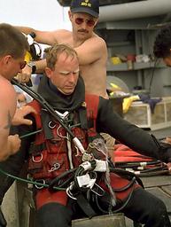 Keywords: Defense.gov News Photo 960802-N-0507M-005.jpg en U S Navy diver Damage Controlman Chief Michael Bosler of Louisville Ky is assisted in removing diving suit and gear following a 60-minute dive during search and recovery operations at the TWA Flight 800 crash site Divers enter the chamber within three minutes after they emerge and undergo surface decompression a procedure that rids the body of the excess nitrogen Conducting 24 hour operations in 12 hour shifts the U S Navy's salvage rescue ship USS Grasp ARS 51 has dive teams submerged to depths of 120 960802-N-0507M-005 Navy http //www defense gov/photos/newsphoto aspx newsphotoid 404 1996-08-02 en Journalist Second Class Ligia I Manning U S Navy PD-USGov-Military-Navy Defense gov news media for August 1996 Import by User Slick-o-bot/Defense gov News Photos Defense gov photos requiring renaming Images from United States Navy to check |