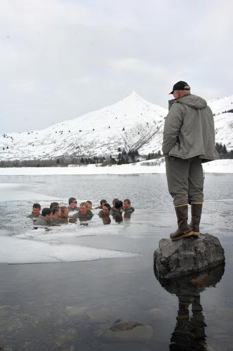 | Keywords: Defense.gov News Photo 090408-N-3714M-045.jpg en A cold-weather training instructor monitors U S Navy sailors as they spend five minutes in near-freezing water as part of SEAL Qualification Training at Kodiak Alaska on April 8 2009 Candidates are completing the rewarming exercise after spending 48 hours in the Alaskan mountains navigating the rugged terrain and surviving frigid conditions The 28-day cold-weather course is part of the year long process to become a Navy SEAL 090408-N-3714M-045 http //www defense gov/photos/newsphoto aspx newsphotoid 11142 2009-04-08 en Petty Officer 2nd Class Erika N Manzano U S Navy PD-USGov-Military Import by User Slick-o-bot/Defense gov News Photos SEAL Qualification Training Taken with Nikon D2Xs United States Navy training Military in Alaska 2009 in Alaska Survival training |