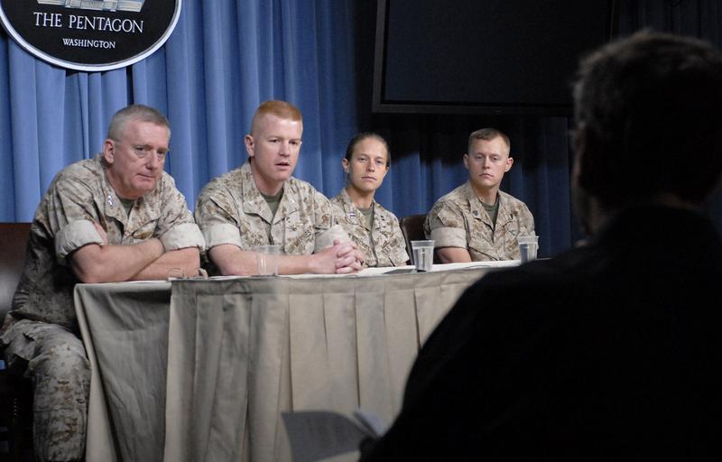 | Keywords: Defense.gov News Photo 080502-N-2855B-051.jpg en U S Marine Lt Col Paul Rock 2nd from left answers a reporter's question about the initial combat deployment of the MV-22 Osprey during a Pentagon press briefing in Arlington Va on May 2 2008 Rock Deputy Commandant for Marine Corps Aviation Lt Gen George J Trautman III left Capt Sara Faibisoff 2nd from right and Marine Sgt Danny Herrman discussed experiences as the first unit to take the MV-22 Osprey into combat Rock Faibisoff and Herrman are attached to Marine Medium Tiltrotor Squadron 263 080502-N-2855B-051 http //www defense gov/photos/newsphoto aspx newsphotoid 10198 2008-05-02 en Petty Officer 2nd Class Molly A Burgess U S Navy PD-USGov-Military Import by User Slick-o-bot/Defense gov News Photos Defense gov photos requiring renaming Bell-Boeing V-22 Osprey USMC Taken with Nikon D200 MV-22B Osprey Marine Medium Tiltrotor Squadron 263 George J Trautman III Paul J Rock Jr |