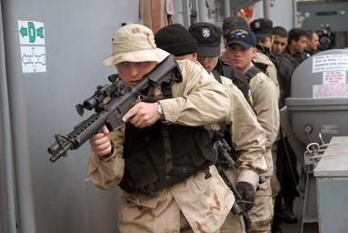 Keywords: Defense.gov News Photo 080228-N-9703H-116.jpg en U S Navy Petty Officer 1st Class Nicholas Heimsoth leads an eight-man team of U S and Bulgarian sailors to the fantail after securing the bridge during a visit board search and seizure training exercise on board the guided-missile cruiser USS San Jacinto CG 56 while in port in Varna Bulgaria on Feb 28 2008 Sailors assigned to the San Jacinto are also training Bulgarian navy sailors on damage control techniques and procedures 080228-N-9703H-116 http //www defense gov/photos/newsphoto aspx newsphotoid 10002 2008-02-28 en Petty Officer 2nd Class Chris Henry U S Navy PD-USGov-Military Import by User Slick-o-bot/Defense gov News Photos Defense gov photos requiring renaming Taken with Nikon D200 Images from United States Navy to check USS San Jacinto CG-56 |