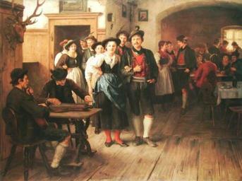 Keywords: Defregger Vor dem Tanz.jpg artwork Creator Franz von Defregger Vor dem Tanz Oil on canvas PD-old-auto 1921 Dance in paintings Tracht in art Franz von Defregger 19th-century paintings location missing Paintings not categorised by year People in rooms in art Hammered dulcimers Tavern interiors in art 19th-century paintings of musicians Zither_players_in_art 19th-century genre paintings |