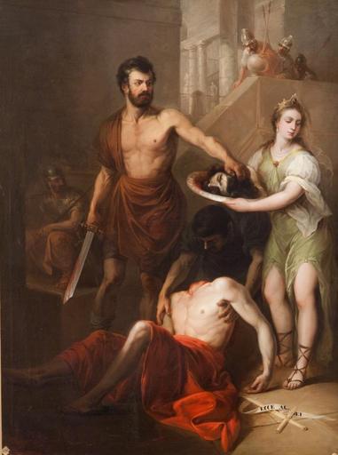 | Keywords: Degollación del Bautista, de Antonio Cabral Bejarano (Real Academia de Bellas Artes de San Fernando).jpg La obra representa el momento en que la cabeza del profeta San Juan Bautista que fue decapitado por orden del rey Herodes Antipas fue entregada en una bandeja a Salomé quien a continuación y según se refiere en los Santos Evangelios la entregó a su madre la reina Herodías siendo los dicípulos de Juan el Bautista los que dieron sepultura al resto de su cuerpo circa 1835 1836 oil on canvas Size cm 145 192 Institution Real Academia de Bellas Artes de San Fernando http //ceres mcu es/pages/Main accession number 0247 http //ceres mcu es/pages/Main PD-old-100 Paintings of the beheading of John the Baptist Paintings of Salome with the head of John the Baptist Paintings of John the Baptist in Spain 19th-century paintings of John the Baptist Antonio Cabral Bejarano 19th-century paintings in the Royal Academy of Fine Arts of San Fernando 1830s paintings in Spain |
