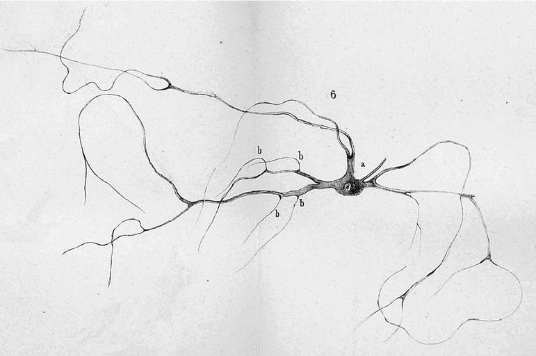 Keywords: Deiters6.JPG en Neuron with axon Deiters 1865 Deiters O F K 1865 Untersuchungen u¨ber Gehirn und Ru¨ckenmark des Menschen und der Sa¨ugethiere Braunschweig Germany Vieweg pp 1 “318 Otto Deiters 1865 public domain PD-old Otto Deiters