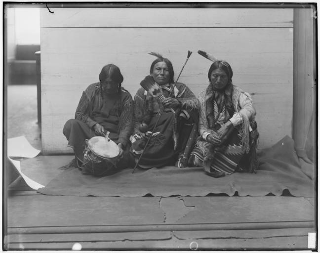 | Keywords: Delegation, "Wooden Lance" (Kiowa), "Apache John" (Apache), and "Big Looking Glass" (Comanche). - NARA - 523722.jpg Scope and content General notes 523722 Local identifier 106-IN-1473B Smithsonian Institution Bureau of American Ethnology 1897 - 1965 Still Picture Records Section Special Media Archives Services Division NWCS-S National Archives at College Park 8601 Adelphi Road College Park MD 20740-6001 other date circa 1871 1907 Record group Record Group 106 Records of the Smithsonian Institution 1871 - 1952 Record group ARC 435 Photographic Negatives of Native American Delegations and Archaeology of the Southwestern United States compiled 1879 - 1907 documenting the period 1595 - 1907 Series ARC 523558 File unit File unit ARC Variant control numbers NAIL Control Number NWDNS-106-IN-1473B Other versions <gallery> File Delegation _ Wooden_Lance _ Kiowa _ Apache_John _ Apache _and_ Big_Looking_Glass _ Comanche _-_NARA_-_523722 tif tif File Delegation _ Wooden_Lance _ Kiowa _ Apache_John _ Apache _and_ Big_Looking_Glass _ Comanche _-_NARA_-_523722 jpg jpg </gallery> NARA-cooperation PD-USGov Kiowa Apaches Comanche Black and white photographs of sitting men Native American musical instruments Delegations |