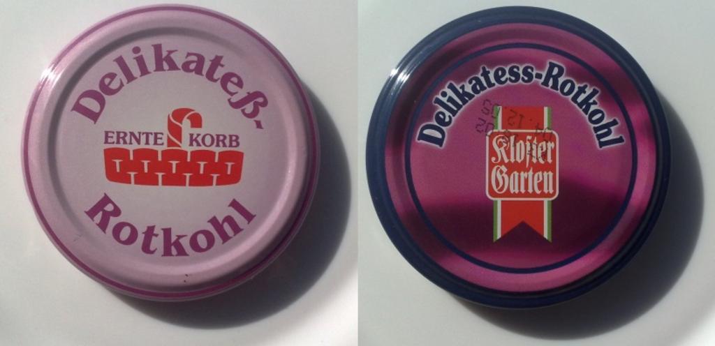 Keywords: Delikatess.JPG en The German sign Delicious red cabbage Left cap is with old orthography right with new cs Německý nápis Delikatesní červené zelí - na levém víčku je použit starý pravopis na pravém nový own Qwertz0451 2013-07-18 German language German typography ß Red cabbage-based food Food ingredients of Germany |