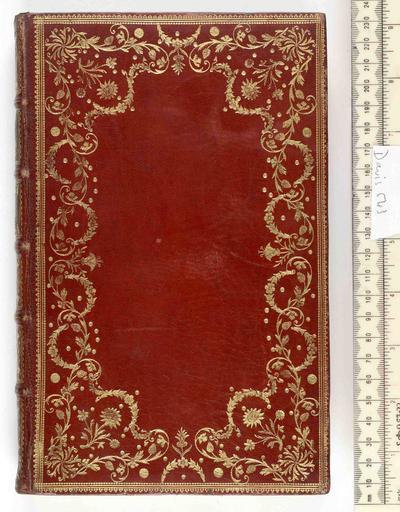 Keywords: Della natura delle cose libri sei - Upper cover (Davis543).jpg Style Frame Rococo; Caption Upper cover; Colour Red; Edge Gilt exhibition history Decorative Technique Tooled in blind Tooled in gold; Cover Material Goatskin includes morocco turkey etc Unspecified object history Text 1754; Amsterdam; Unspecified object type Cc-zero place of creation Binding France place of discovery Leon Gruel Manuel historique et bibliographique de l'amateur de reliures Paris 1887 vol I plate opposite p85 relating to binding with Douceur ticket M M Foot The Henry Davis Gift vol III London 2010 British Library image http //www bl uk/catalogues/bookbindings/LargeImage aspx RecordId 020-000002098 ImageId ImageId 40654 Copyright BL Della natura delle cose libri sei Uploaded with GWToolset Della natura delle cose libri sei - Upper cover Davis543 http //www webarchive org uk/bldatasets/bindings/6259_4 jpg Gilded books 18th-century bookbinding British Library Bookbindings |