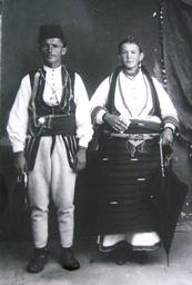 Keywords: Demir-hisarska nosija.jpg mk Б ачна двојка од Деми Хиса облечени во носија снимени во ателјето на б а ата анаки во Битола 1916 година en Couple of Demir Hisar dressed in folklore costume photographed in the studio of the brothers Manaki in Bitola 1916 DARM archive 1916 The State Archives of the Republic of Macedonia DARM Bitola Department Creator Yanaki and Milton Manaki other versions Custom license marker 2016 10 04 PD-Macedonia Wikipedian in Residence at DARM Photographs by Manaki Brothers National costumes of the Republic of Macedonia Folklore costumes Demir Hisar |