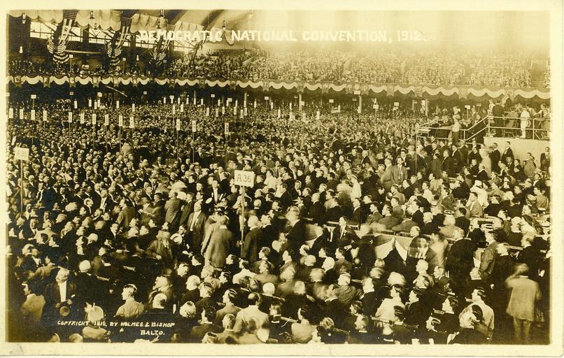 | Keywords: democratic national convention democraticnationalconvention baltimore 1912 crowd Local Accession Number: PC 42 Description: Democratic National Convention of 1912 in Baltimore, MD. Photographer: Unknown Source: Donated by Wallace McClure Size: 3x5 Medium: Print, Sepia Date: 06-25-1912 to 07-02-1912 Local Accession Number: PC 42 Description: Democratic National Convention of 1912 in Baltimore, MD. Photographer: Unknown Source: Donated by Wallace McClure Size: 3x5 Medium: Print, Sepia Date: 06-25-1912 to 07-02-1912 |